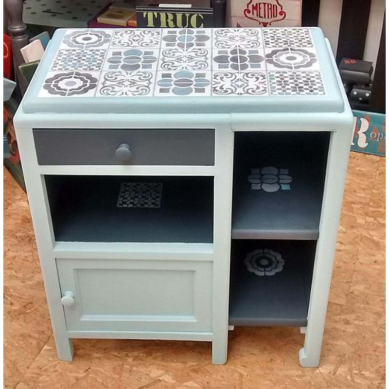 Faciles à utiliser et compatibles avec toutes les peintures Camaëlle, ils vous permettent de jouer avec les teintes, les textures et les styles. Une simple touche suffit pour transformer un meuble en pièce d’exception ou donner du caractère à un mur. Avec les pochoirs Camaëlle, votre intérieur devient un véritable terrain d’expression artistique.