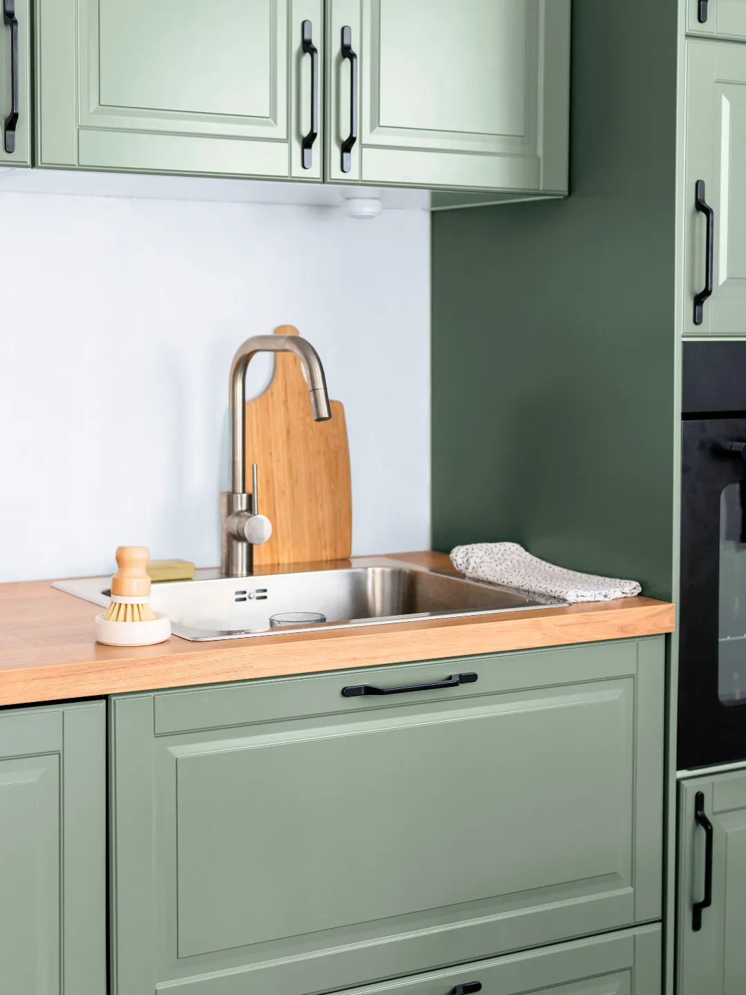 Sur les murs, Amande crée un décor frais et lumineux. Associée à des couleurs plus dynamiques, elle met en valeur le mobilier avec subtilité, qu’il s’agisse d’une cuisine noire contemporaine, d’une salle de bain blanche ou d’un meuble coloré. Mariée à un rose pâle, elle compose une ambiance tendre et cocooning, parfaite pour une chambre d’enfant ou un espace de détente.