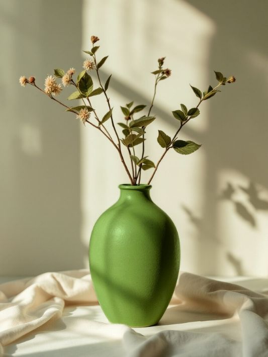Feuille de Vigne est un vert profond et gorgé de soleil. Il évoque l'ombre fraîche des rangs de vigne en plein été et la force tranquille de la nature. Ce vert sombre et saturé incarne la puissance végétale et impose une élégance feutrée, parfaite pour créer des contrastes forts ou des "total looks" immersifs.