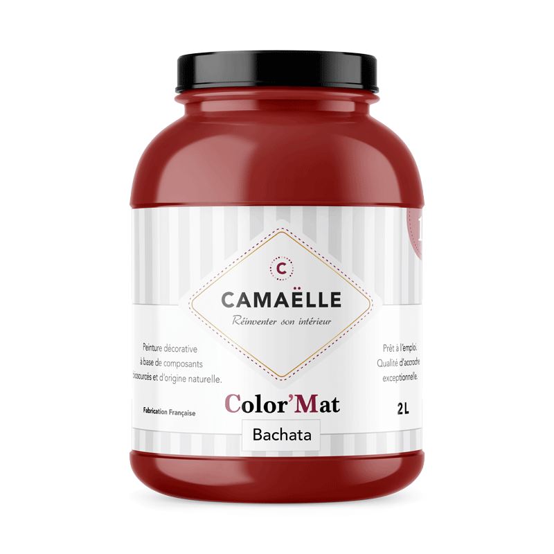 Le coloris Bachata est un rouge profond et chaud qui apporte une sensation de rapprochement. Il évoque la noblesse dans un salon, l'amour et la passion dans une chambre et rappelle la couleur du vin dans une cuisine. Pour relooker de vieux meubles ou objets, Bachata est la couleur qui leur donnera un petit côté industriel.